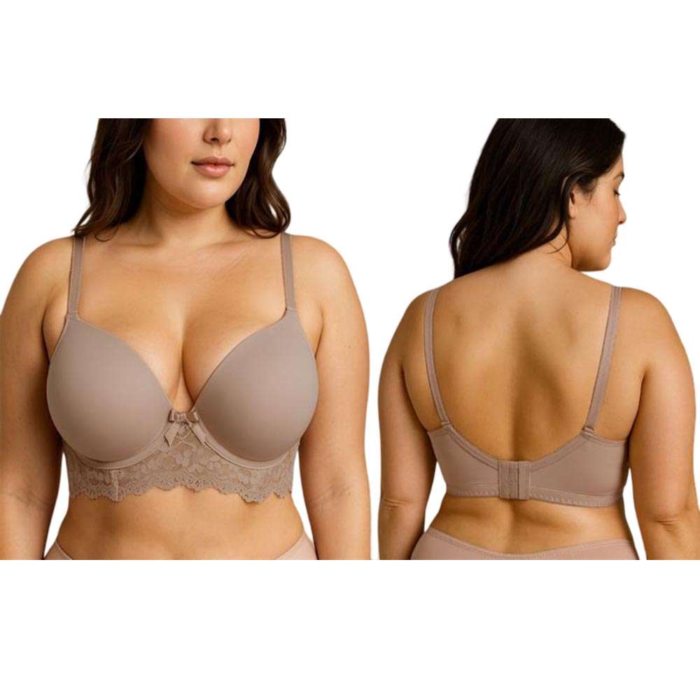 Cuenta con copas preformadas y varillas laterales, lo que ayuda a mantener una forma natural y proporciona un soporte firme, ideal para bustos medianos y grandes. Su diseño color nude lo hace perfecto para usar bajo prendas claras o ajustadas, ofreciendo discreción y una apariencia uniforme.
