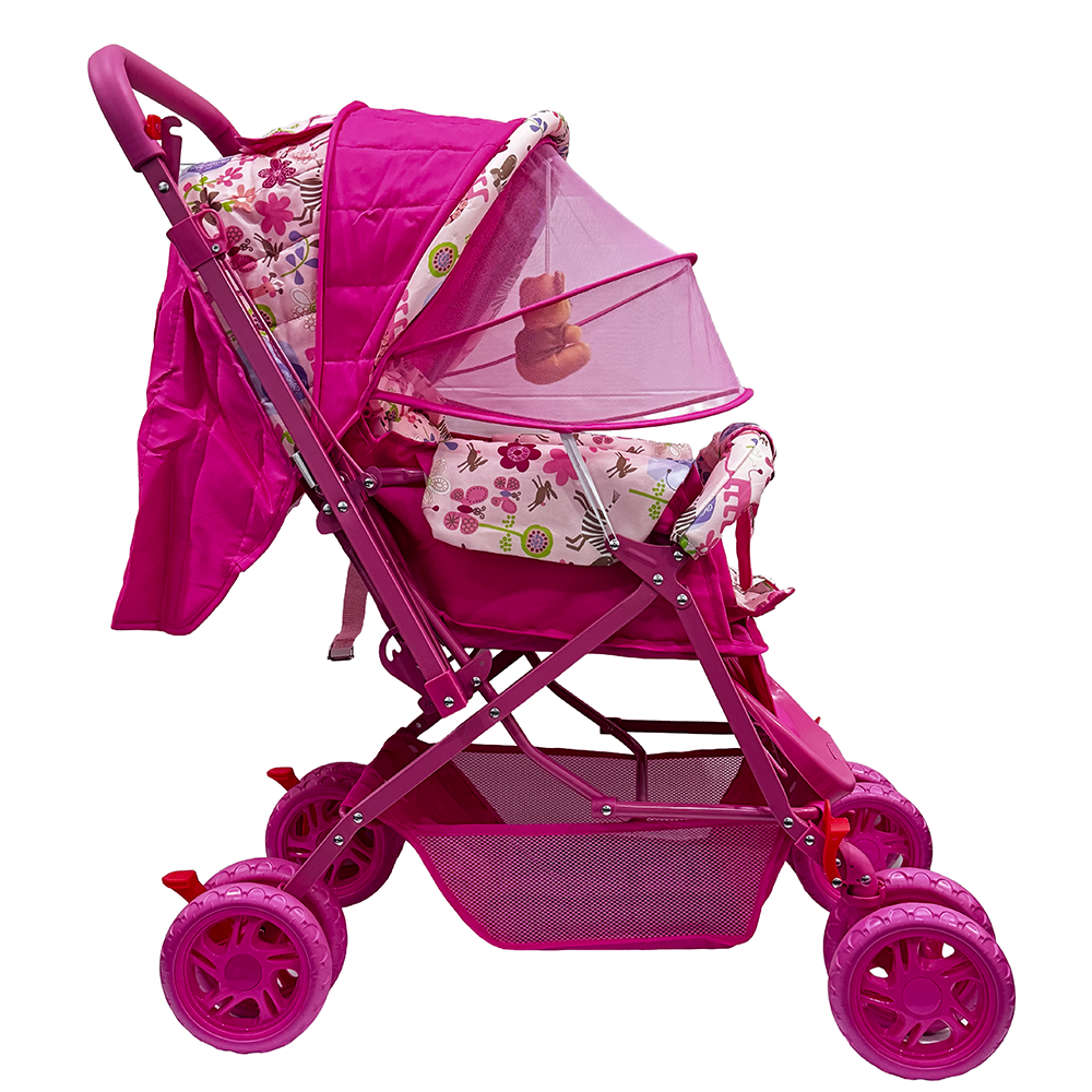 Este coche para bebé Wins Baby en tono rosa combina comodidad, seguridad y un diseño infantil con estampado floral y detalles de animales. Su estructura metálica ligera brinda estabilidad sin añadir peso excesivo, lo que permite moverlo con facilidad en diferentes superficies. El asiento acolchado garantiza un descanso cómodo para el bebé, mientras que el arnés ajustable ayuda a mantenerlo seguro en cada paseo.