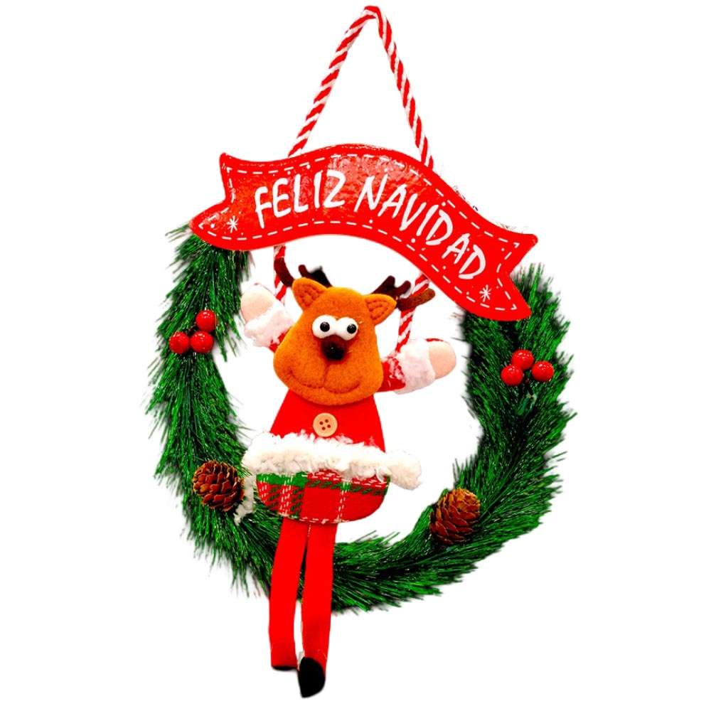 La Corona Navideña Gold Home es un adorno clásico para quienes desean realzar la decoración del hogar en temporada navideña. Fabricada con materiales sintéticos resistentes, combina ramas verdes con detalles de piñas, esferas y un tierno reno de tela con ropa roja que sostiene un cartel con la frase “Feliz Navidad”.