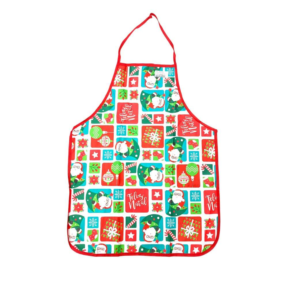 Delantal de Cocina Navideño SHINE: Fabricado en tejido resistente a manchas y salpicaduras. Presenta un diseño estampado de alta resolución con motivos festivos (Santa, regalos, «Feliz Natal»). Tiras ajustables al cuello y la cintura para un ajuste cómodo. Ideal para repostería o cenas festivas. 100% lavable a máquina.