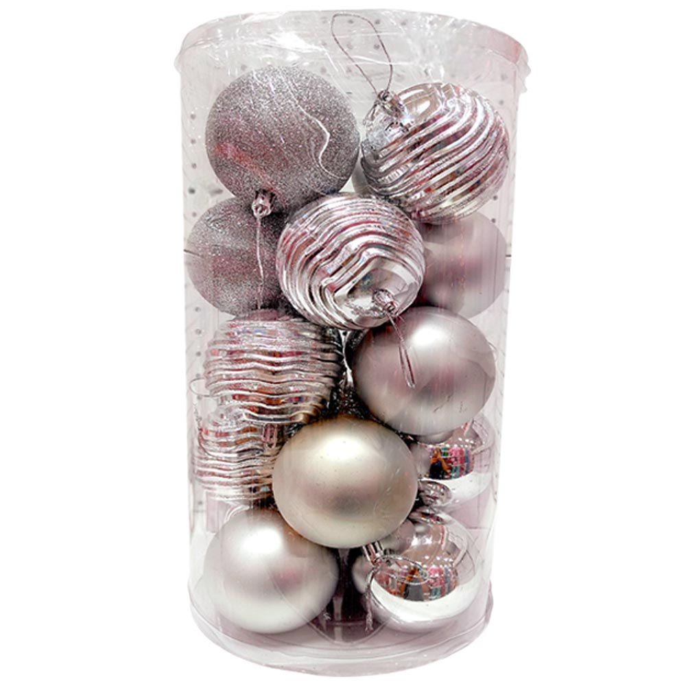 Cada esfera está elaborada en plástico resistente, un material ligero que facilita colgarlas sin riesgo de que se rompan. Esto las hace prácticas para hogares con niños o mascotas, ya que no representan peligro en caso de caída. El color plata se adapta fácilmente a estilos clásicos, minimalistas o contemporáneos, integrándose con luces cálidas o frías, guirnaldas y demás accesorios.