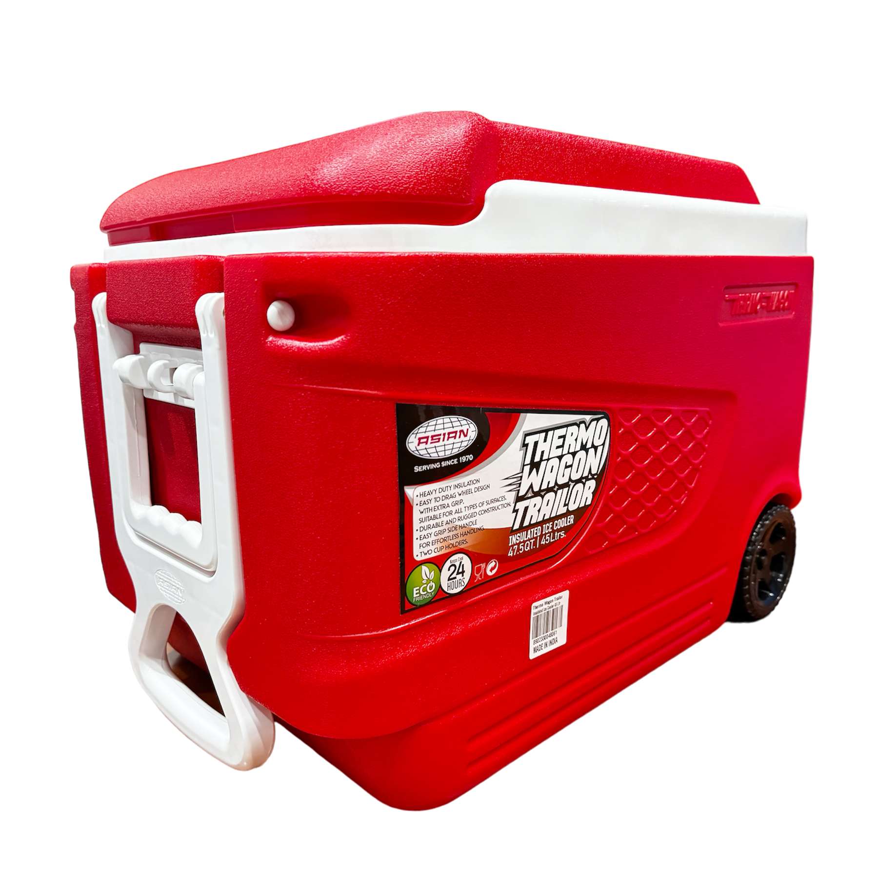 ¡Dale un toque de frescura y elegancia a tus momentos al aire libre con nuestras Hielera de 45 litros de la marca ASIAN, en un vibrante color rojo.