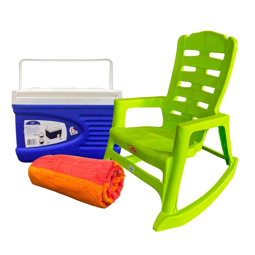 Disfruta del mejor verano con nuestro exclusivo Kit de Verano, contiene silla mecedora para niños. hielera de 6 litros, toalla de verano.