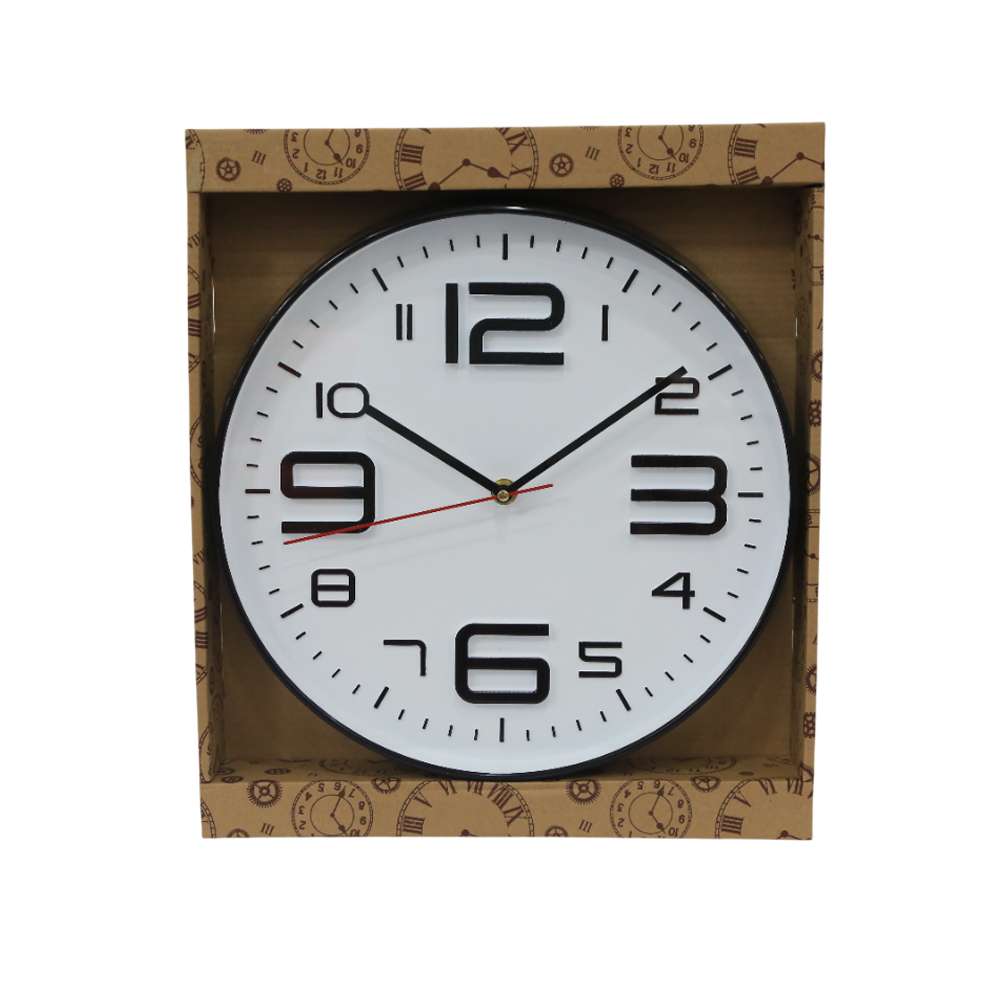 Reloj de pared Gold Home con orilla negra y fondo blanco, con un diseño clásico y elegante. Perfecto para darle un toque sofisticado a tu sala o cuarto.