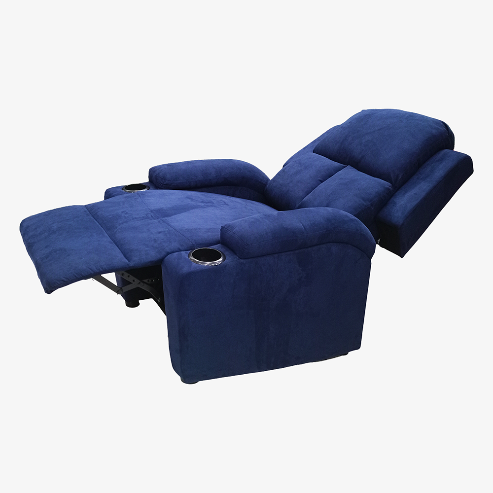 Disfruta un descanso completo con este sillón reclinable en color azul, diseñado para brindar soporte y comodidad en el uso diario. Su tapizado en microfibra ofrece una textura suave al tacto y fácil mantenimiento, ideal para hogares con uso constante. Cuenta con un sistema reclinable manual de palanca lateral que permite ajustar la posición del respaldo y el reposapiés de manera estable.